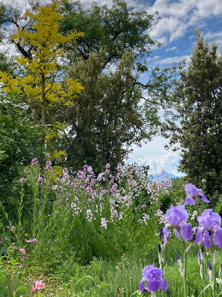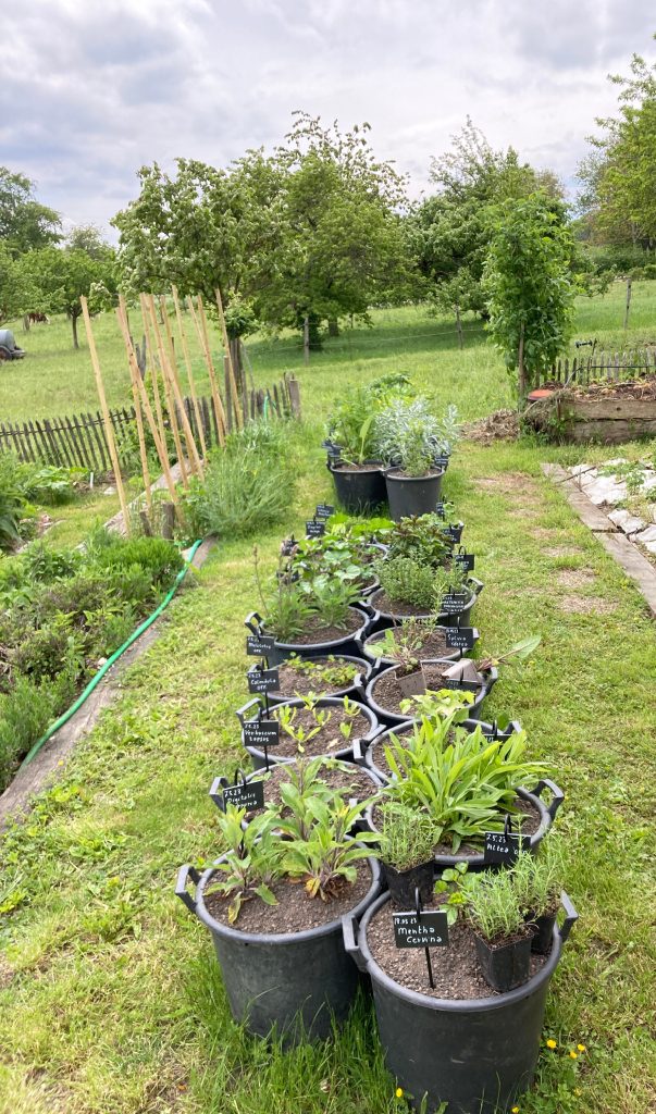 Le jardin de Saint-Gall, né au IXᵉ siècle, dessinait un monastère vivant et autosuffisant : potager nourricier, herbularius soignant, verger généreux — chaque espace au service du vivant et de la communauté. Au Jardin des Ochettes, cet esprit se prolonge : sous les sureaux et les noisetiers, les légumes d’été côtoient les simples médicinales. Un lieu où l’on cultive à la fois la terre, le soin et le lien.